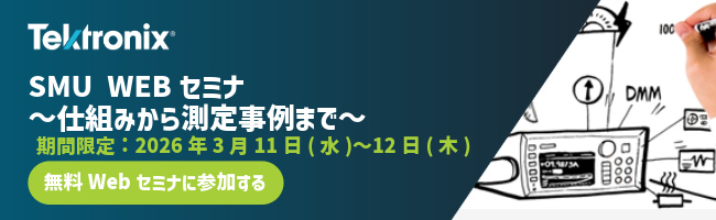 ソース・メジャー・ユニット(SMU)とは?電源やマルチメータと何が違う?皆様からよく頂くご質問にお答えし、SMUの基礎から測定実例や応用アプリケーションなどを交えた入門セミナをWeb形式で開催いたします。仕組みから様々な測定事例までSMUによる試験効率化の方法を2日間でまとめて徹底解説します。